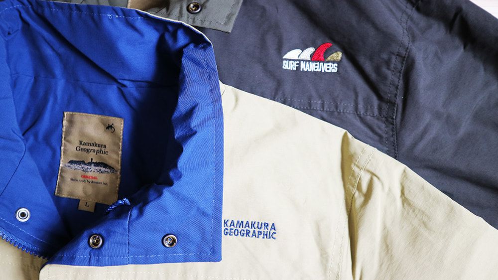 鎌倉に店舗展開する株式会社アムマックス(本社横須賀)がお店に来るお客様の要望に応えて作った造語です。Kamakura GeographicはT-Shirts 作りをしている工房です。鎌倉ジオグラフィックのファンの方から冬場にカッコいい鎌倉らしい大人のアウタージャケットを作って欲しいとの声からこの取り組みが始まりました。