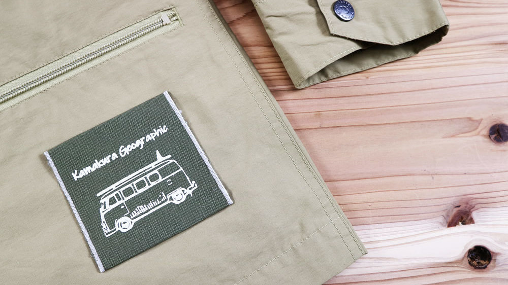 どこに着て行っても恥ずかしくない オリジナルロゴの刺繍。KAMAKURA GEOGRAPHIC のロゴの場合はボディー色によって色を選んで頂けます。